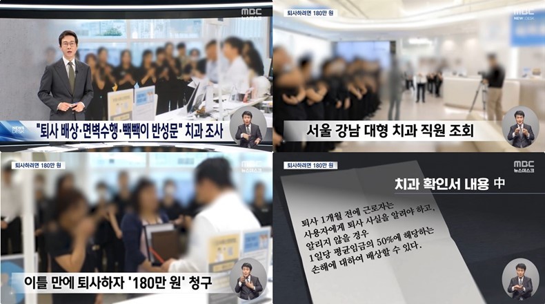 실제로 MBC와 연합뉴스 등의 언론보도를 종합하면 D치과는 입사 한 달이 지나면 50만원, 세 달이 되면 100만원의 지원금을 지급한다며 신입직원을 모집했다. 하지만 한 직원이 입사 전 고지된 것과 근무내용이 다르다며 출근 이틀 만에 퇴사의사를 밝히자 D치과는 180만원의 손해배상금을 청구했다. D치과가 해당 직원의 출근 첫 날 퇴사를 한 달 전에 통지하지 않으면 월급의 절반을 배상해야 한다는 내용의 ‘위약예정’을 맺었기 때문. 직원이 항의하자 D치과는 내용증명까지 보냈고, 결국 고용노동부에 진정을 넣게 됐다.