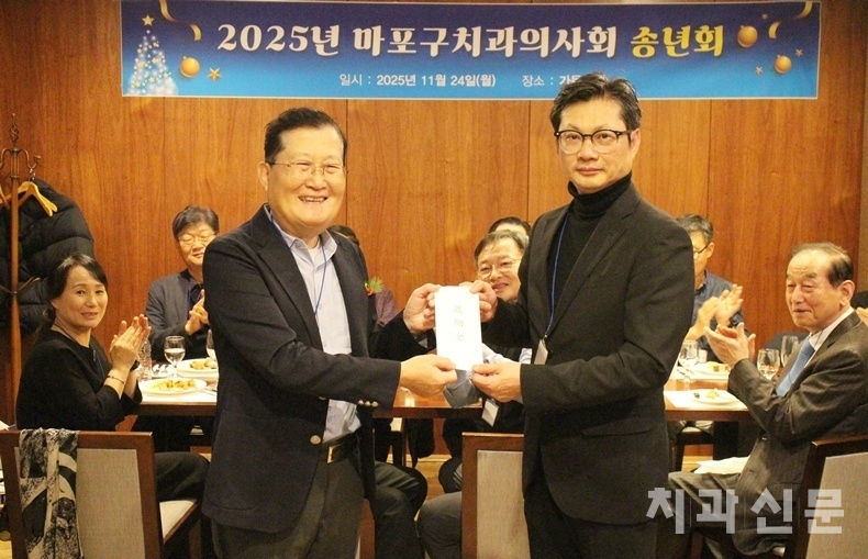 이날 송년회는 집행부 임원들과 원로 회원을 비롯한 많은 회원이 모처럼 한자리에서 즐거운 시간을 보냈다. 또한 서울시치과의사회(이하 서울지부) 강현구 회장과 최성호 공보이사가 참석해 마포구회 송년회를 축하했다.