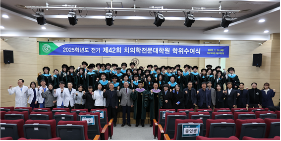[치과신문_이가영 기자 young@sda.or.kr] 전남대학교치의학전문대학원(원장 고정태·이하 전남대치전원)이 지난 2월 26일 제42회 학위수여식을 개최했다. 이날 행사에서는 치과의사 윤리강령 선서식과 동창회 입회식도 함께 진행됐다.