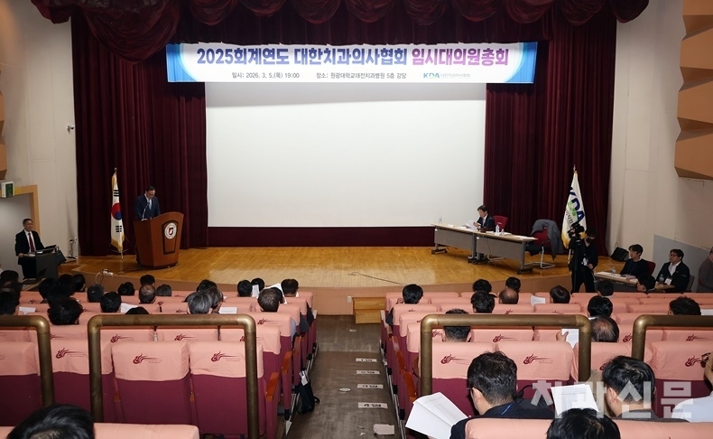 [치과신문_김영희 기자 news001@sda.or.kr] 대한치과의사협회(이하 치협) 임시대의원총회(이하 임총)가 원광대대전치과병원 강당에서 개최됐다. 지난 2월 24일 치협 마경화 회장직무대행이 임총 개최 필요성을 발표한 지 10일 만이다. 긴박하게 잡힌 일정, 평일 저녁 지방 개최라는 악조건 속에서 임총 성원 기준인 과반(대의원 50% 초과) 출석 여부조차 불투명했지만, 전체 대의원 220명 가운데 자격상실 2명을 제외한 218명 중 114명이 참석해 성원됐다. 대의원 과반 기준은 110명. 이날 상정된 모든 안건은 일사천리로 통과됐다.