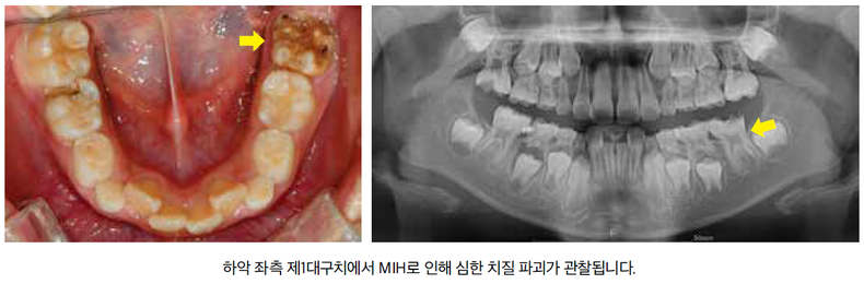 MIH는 발육성 질환이므로 조기 발견과 정기 검진이 예후를 결정합니다.제1대구치가 올라오는 만 6세 무렵에는 부모님의 세심한 관찰이 필요합니다.