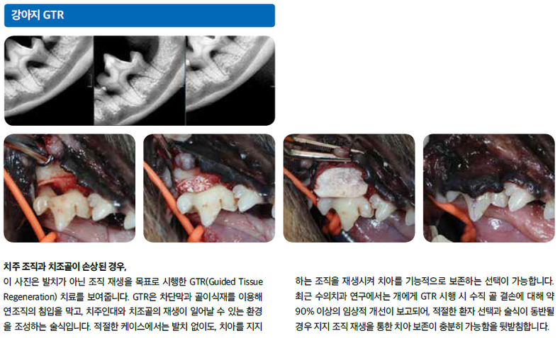 이러한 변화 속에서 케어덴은 치아를 살리기 위한 선택지를 넓히는 데 집중해 왔습니다. 사람 치과에서 비교적 최근 도입되어 보존치료 영역에서 활용도가 높아진 MTA(Mineral Trioxide Aggregate)를 비롯해 치주 조직과 골 조직 재생을 위한 GTR(Guided Tissue Regeneration) 술식도 적용하며, 동물 환자의 치아를 최대한 보존하기 위해 노력하고 있습니다. 이는 단순히 통증을 제거하는 데서 그치는 것이 아니라, 병원을 찾은 아이에게 가능한 오래 기능하는 치아를 남겨주고자 하는 진료 철학의 연장선입니다.