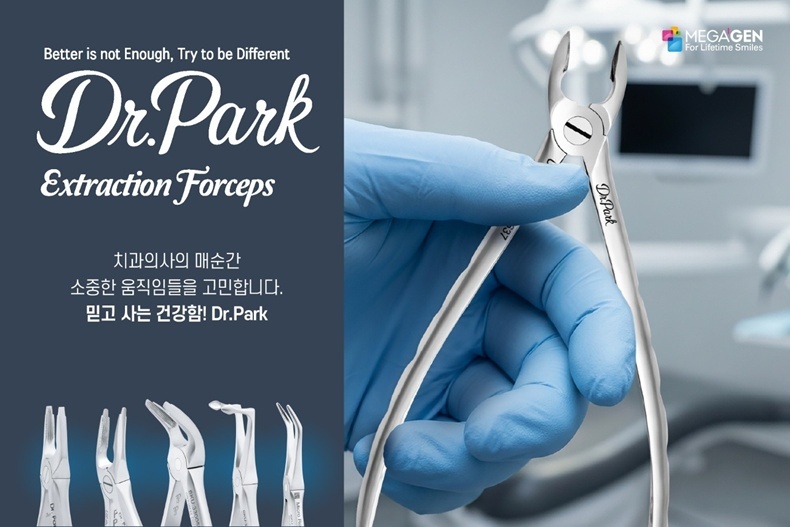 [치과신문_신종학 기자 sjh@sda.or.kr] 메가젠임플란트(대표 박광범·이하 메가젠)가 박광범 원장의 41년 임상 노하우를 바탕으로 설계 검증한 신제품 ‘Dr.Park Goods(닥터박 굿즈)’ 라인업을 출시했다. 이번 신제품은 Dr.Park 발치 포셉, 티슈 포셉, 니들 홀더, 논토크 드라이버 등으로, 임상에서 겪는 불편함을 개선하고, 정밀성과 편의성을 강화한 솔루션이다.