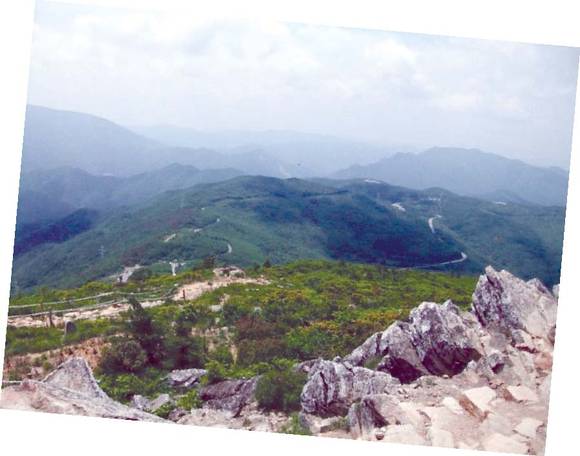 정상 표지석과 돌탑 앞에서 한동안 우리는 1,573m 높이에 사는 신선이 되었다. 우리가 올랐던 길이 발아래 실처럼 구불거리고 저 멀리 우리가 가야 할 하늘길이 보이는 곳, 구름 사이의 백운산, 고봉인 두리봉이 물결 같은 산군(山群)위에 아스라이 우뚝 서 머리를 조아린다.