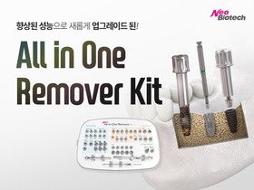 [치과신문_전영선 기자 ys@sda.or.kr] 네오바이오텍(대표 허영구·이하 네오)이 임상 효율성과 안전성을 대폭 강화한 ‘All in One Remover Kit’를 최근 새롭게 선보였다. 이번 리뉴얼은 기존 Fixture Remover(FR)·Abutment Remover (AR)·Screw Remover(SR) 등 주요 구성품을 전면 재설계한 것이 핵심이다. 이를 통해 토크 대응력과 절삭력 향상은 물론, 임상가의 사용 편의성까지 대폭 높였다. 특히 FR part는 Positioner가 새롭게 추가돼 임플란트와의 정밀 체결이 가능해졌으며, ‘Power Hex/ Octa’ 길이를 12㎜→10㎜로 단축해 구치부 접근성을 높였다. 커넥션부도 라운드 형태로 바뀌어 삽입이 수월해졌고, 내부 체결용 스크루 홀이 추가돼 시술 중 분리 문제를 최소화했다. AR part 역시 수직압 방식을 적용해 측방압으로 인한 픽스처 손상 위험을 줄였다. 이로써 파절된 어버트먼트 제거 시 안전성과 성공률이 크게 향상됐다. SR part는 Helix Flute 구조와 개선된 선단각 디자인으로 절삭력을 높였으며, 형성된 홀을 활용해 저속 역회전(≤80rpm)으로도 파절 스크루를 안정적으